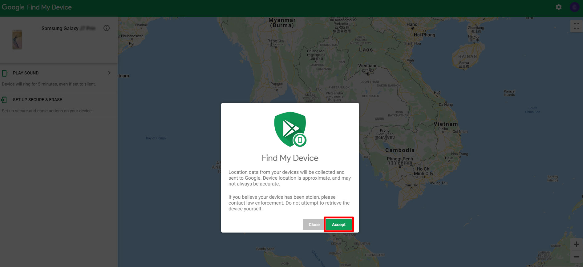 3. Will find a window for instructions on how to behave When the phone is lost, press Accept.